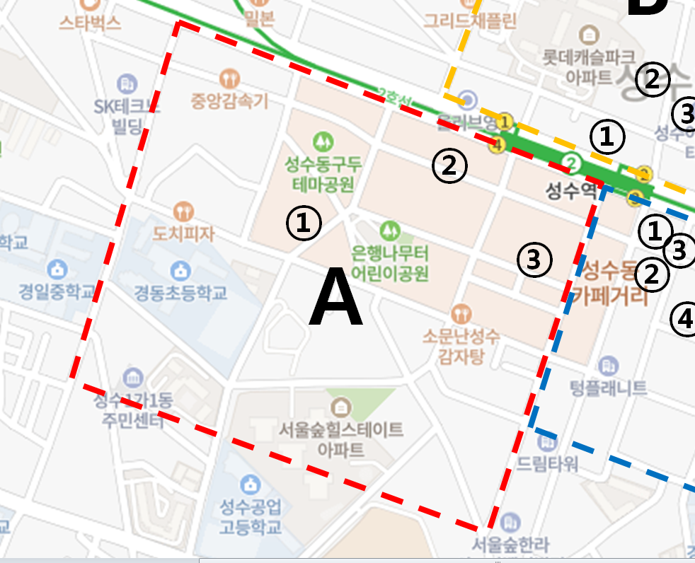 A구역은 성수역 4번출구 인근입니다.