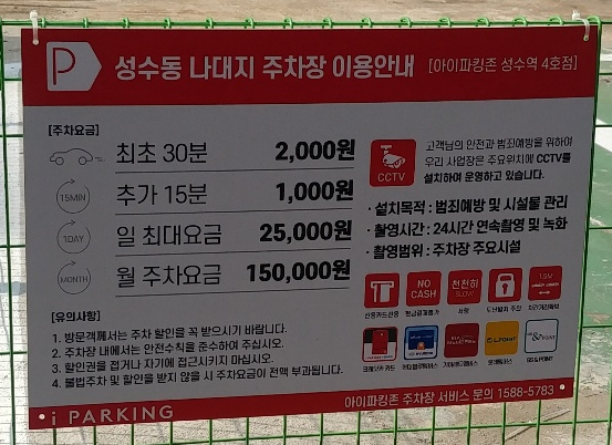 - 월주차 금액 : 아이파킹에서 150,000원으로 표시 (매월 초에 갱신되므로 매월 초 전화해서 확인하면 좋음)