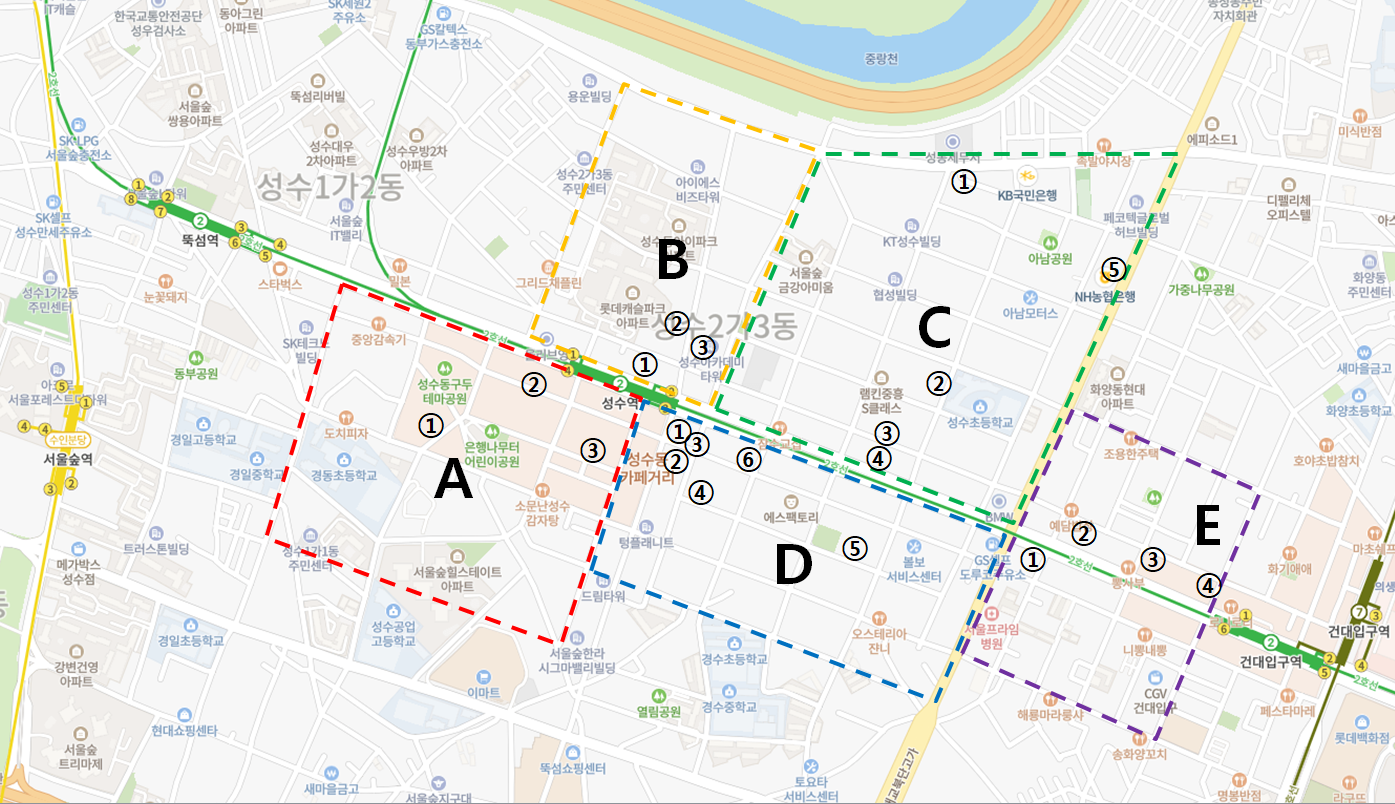 [B구역:성수역1번, 2번출구 인근] 성수역-건대입구역 인근 월주차, 일주차 총정리