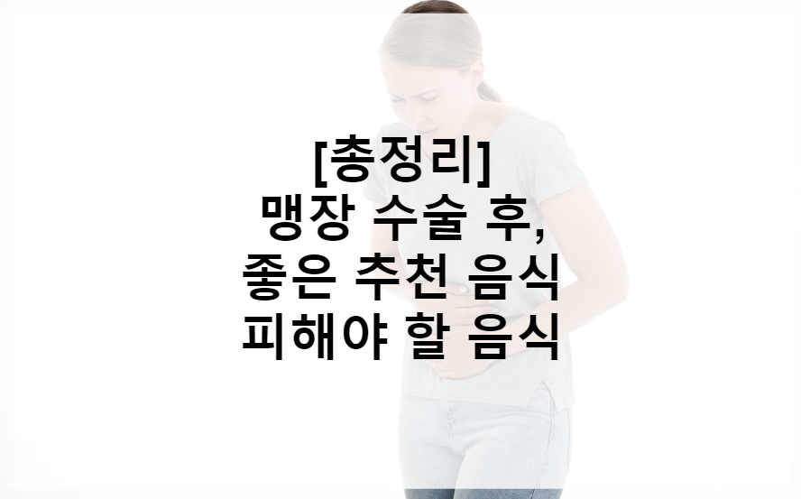 오늘은 다섯 번째로 많이 받는 수술인 '맹장(충수절제술) 수술'에 좋은 음식에 대해서 알아보겠습니다.